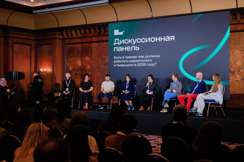 Живая дискуссия завязалась на панели «Быть в тренде: как должны работать маркетологи и пиарщики в 2026 году?» Участие приняли: Мира Халина (KURSIV.MEDIA), Майра Салыкова (Media System Group), Максим Оларь (Freedom Telecom), Русланбек Рахмонов (UZUM), Ольга Андреева (Brand Analytics), Евгений Кузнецов (Сидорин Лаб), Александр Лихтман (ITCOMMS).