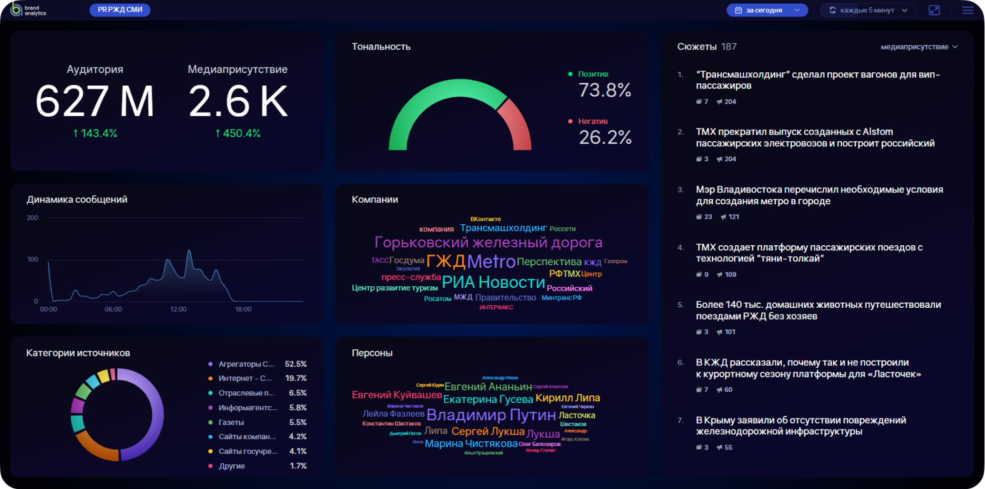 1. Используйте современный мониторинг СМИ в Brand Analytics, он даёт максимальный охват источников упоминаний и множество возможностей для автоматизации ручных действий. Получайте автоматически размеченные сюжеты, определение тональности, выявление популярных спикеров и цитат.