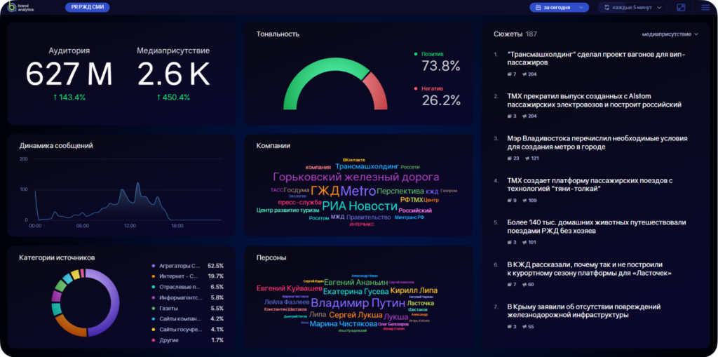 Brand Analytics БАҚ мониторингі мен талдауын автоматтандыруға мүмкіндік береді. Жүйенің артықшылықтары: