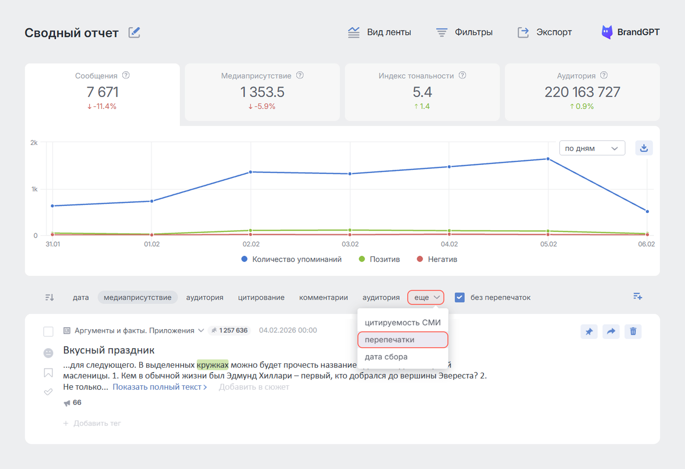 Енді Brand Analytics бір тақырыптағы осындай өте ұқсас хабарламаларды таба алады. Олардың жүйедегі атауы «Қайта басылулар».