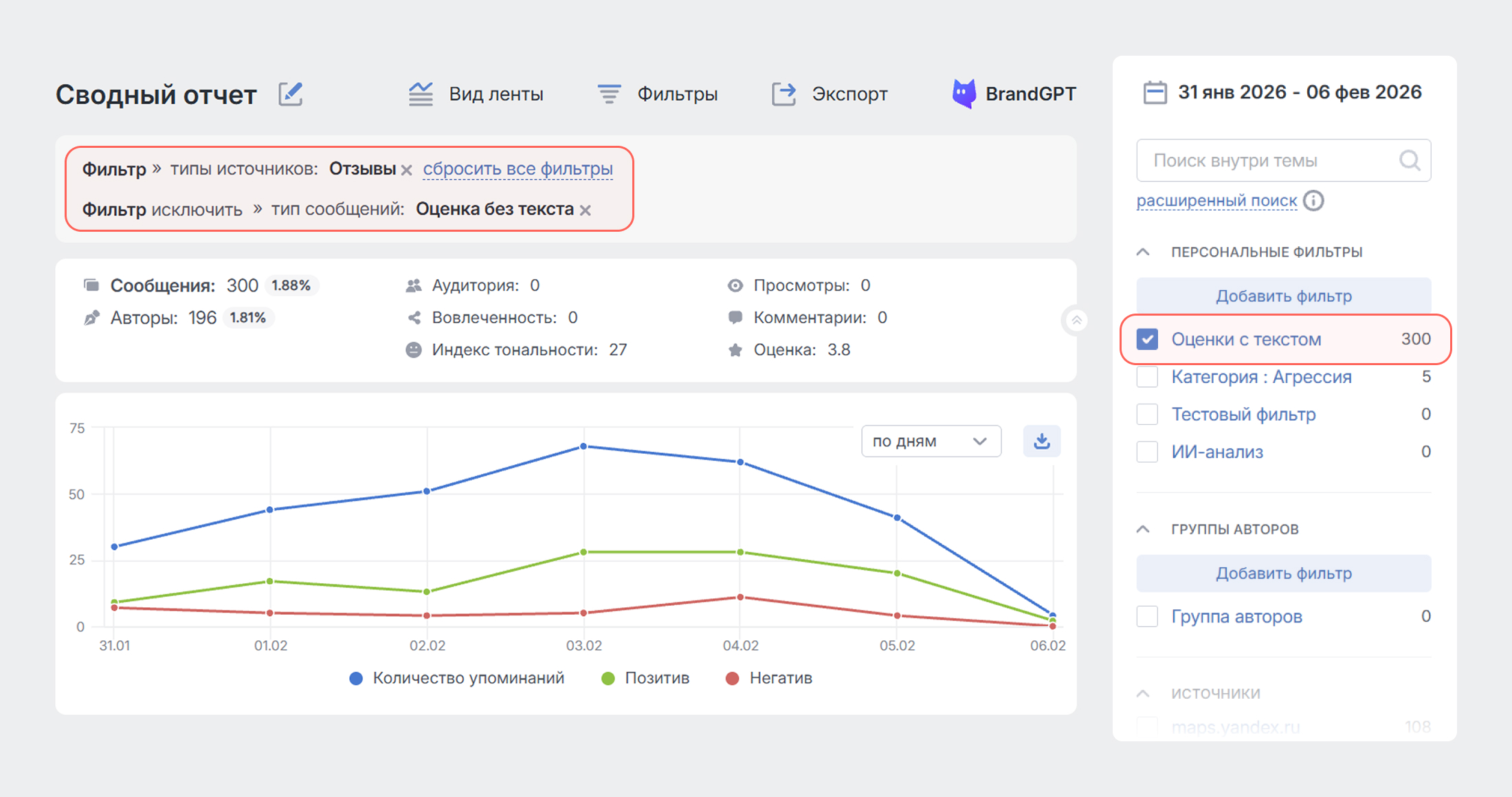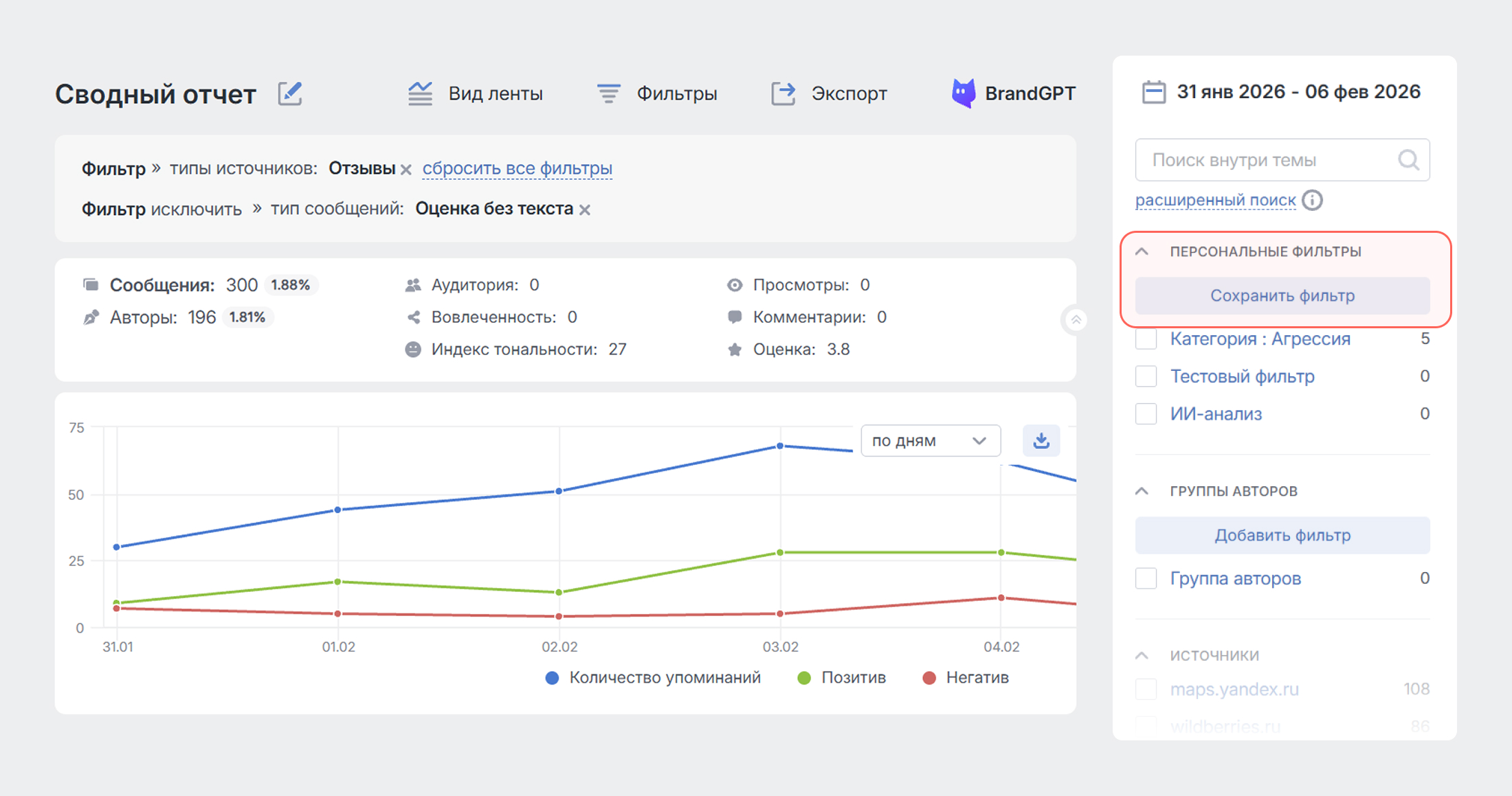Біз Brand Analytics-ті әлеуметтік медиа және БАҚ аналитикасы үшін одан да ыңғайлы құралға айналдыруға тырысамыз. Сізден біздің әлеуметтік желілеріміздегі (ВКонтакте, Telegram-дағы арнамызда) кері байланысты алуға қуанышты боламыз.