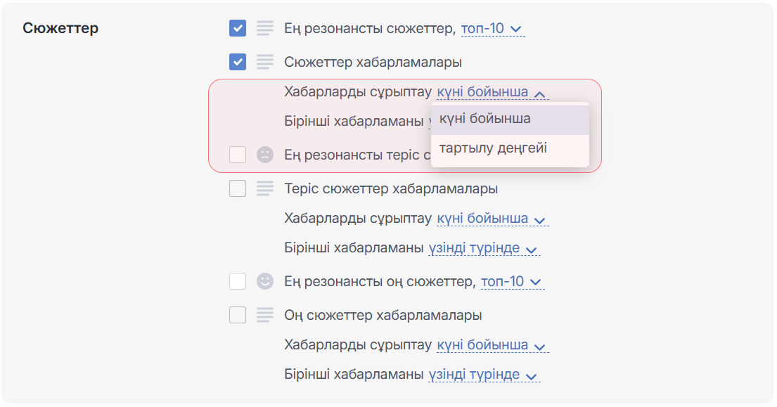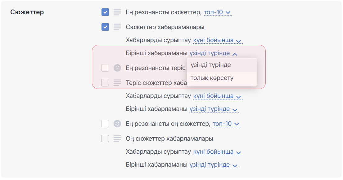 Сюжетті экспорттау параметрлерін жаңарттық: оларды күні бойынша реттеу және сюжеттегі алғашқы хабарламаны толық мәтінмен шығару мүмкіндігін қостық. Бұл аналитикалық тапсырмаларыңыз үшін құжатты икемді түрде реттеуге көмектеседі.